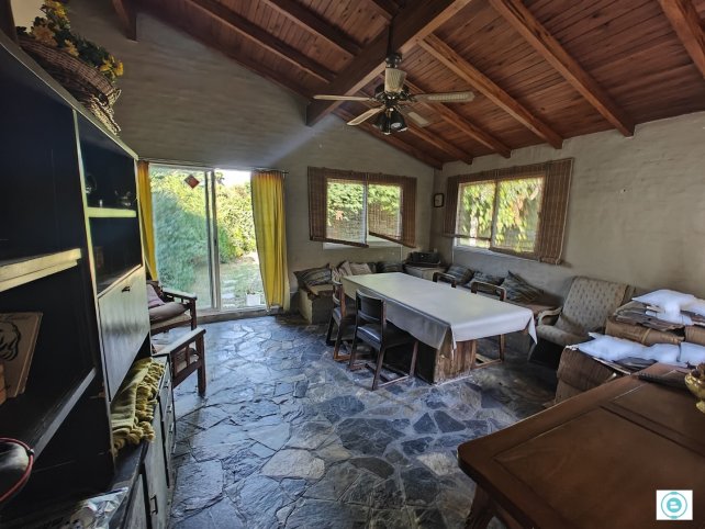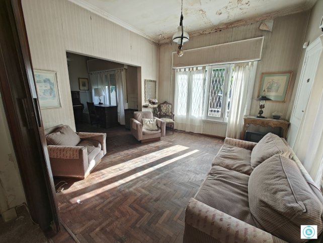 Esta lindísima casa de los años 70 tiene 170 mts cubiertos sobre un lote de 10x40 mts. En la planta baja tiene un amplio living al frente. cocina comedor con lavadero integrado, baño completo y dos dormitorios. Además un quincho con hogar a leña/parrilla y salida a un jardín arbolado con cuarto de guardado exterior. Patio y entrada de auto pasante. En planta alta tiene un escritorio amplio, 1 dormitorio y un baño. Amplio espacio de guardado en el altillo. Sistema de alarma monitoreado. La propiedad presenta una sólida estructura y ofrece un excelente potencial de actualización, requiriendo algunas mejoras y renovaciones según las necesidades y el gusto del comprador.